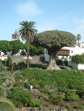 Drago Millenaria in Icod de los Vinos Straßenansicht in Masca, Teno-Gebirge