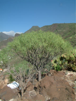 Sukkulentenbusch oberhalb von Santiago del Teide Roque Chiñaco im Teno-Gebirge
